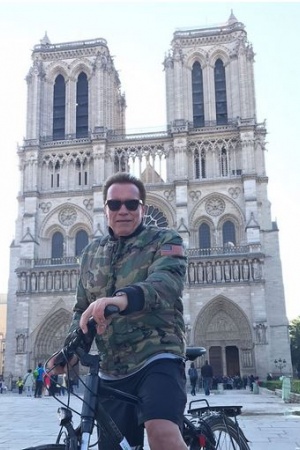 — Фантастическая велопрогулка по Парижу! Не устану говорить: если хотите по-настоящему исследовать город, садитесь на велосипед. Спасибо туристам у Эйфелевой башни за то, что позволили испортить ваше фото! — написал Шварценеггер.