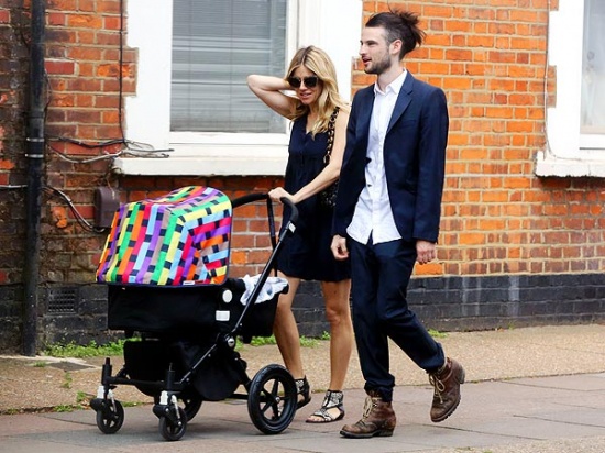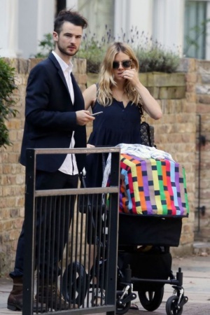 Папарацци засняли, как новоиспеченные родители Сиенна Миллер и Том Старридж гуляют с малышкой по Лондону.