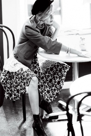 Британская актриса предстала перед читателями в образе хиппи. Она позировала в нарядах Rag & Bone, Celine, Saint Laurent, Derek Lam, Pucci, Louis Vuitton, Valentino, Gucci, Eugenia Kim, Stella McCartney, Albertus Swanepoel и Prada.