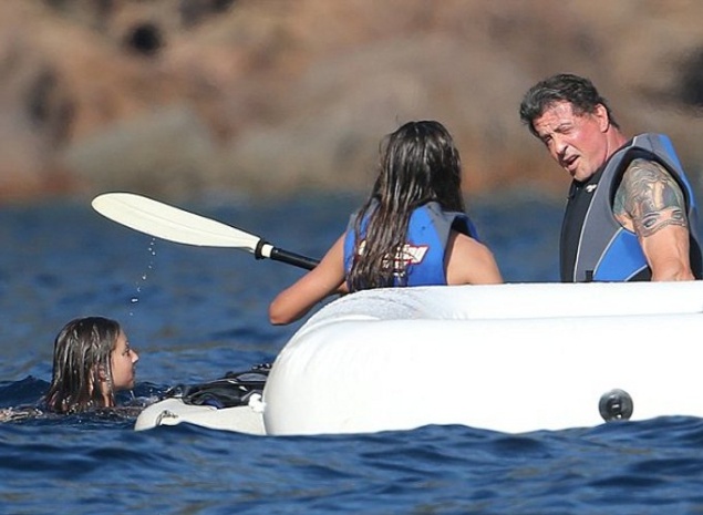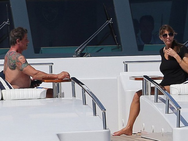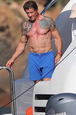 Не плохо для своего возраста выглядит Рембо! Сильвестр Сталлоне показывает свой мускулистый торс во время отдыха на яхте.