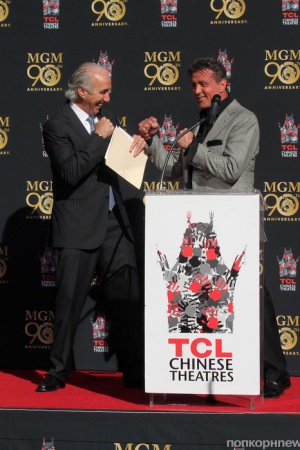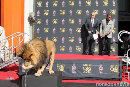 Бесстрашный "Рэмбо" Сильвестр Сталлоне все же старался держаться подальше от льва, представляющего киностудию. Отпечатки зверя в честь юбилея MGM были оставлены на "Аллее славы" у Китайского театра Граумана в Голливуде. Сильвестру выпала честь сказать несколько слов по случаю торжества.