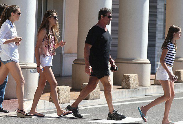 Сильвестр Сталлоне был замечен на прогулке в Монако со своими длинноногими дочерьми: Софией, Систин и Скарлет.