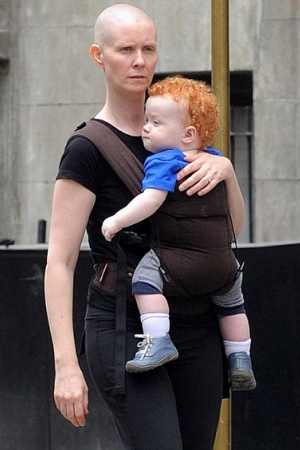 Синтия обрила голову еще в январе ради участия в спектакле Wit, где она играет женщину, проходящую экспериментальное лечение от рака. Ну, а у годовалого Макса уже отросли прекрасные рыжие кудри. Так что сегодня утром на улицах Нью-Йорка можно было увидеть удивительную парочку.