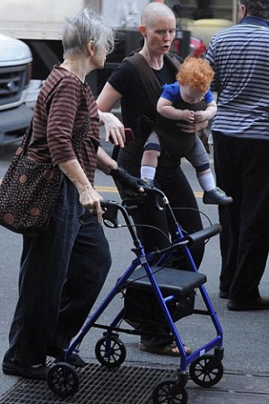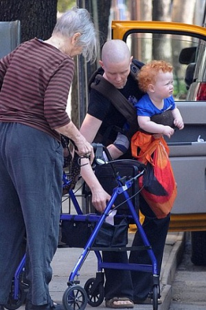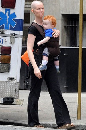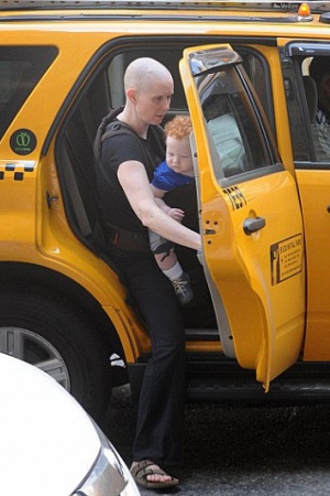 Актриса с обритой головой и ее кудрявый рыжий сынишка приковали к себе взгляды и прохожих, и папарацци.