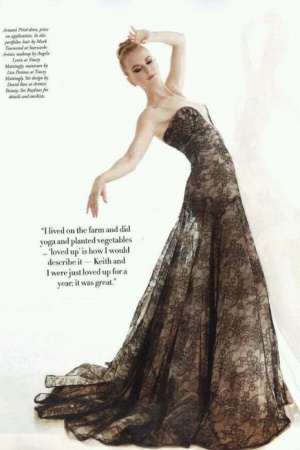 Подробного сопутствующего интервью мы пока не нашли, но в одной из цитат Николь рассказывает о том, как целый год она жила на ферме с Китом Урбаном. По словам Кидман, она сажала овощи и занималась йогой. Этот период своей жизни звезда называет "любовным затворничеством". "Было прекрасно", – призналась Николь.