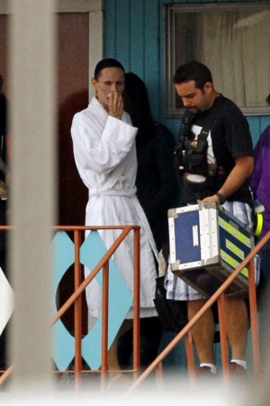 Джаред Лето все там же - на съемках драмы "Далласский клуб покупателей", где он играет больного СПИДом транссексуала. Также папарацци засняли на площадке вполне себе упитанную Дженнифер Гарнер, да еще и что-то кушающую...