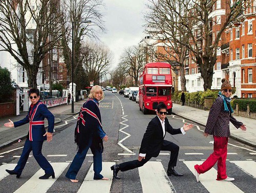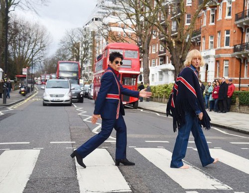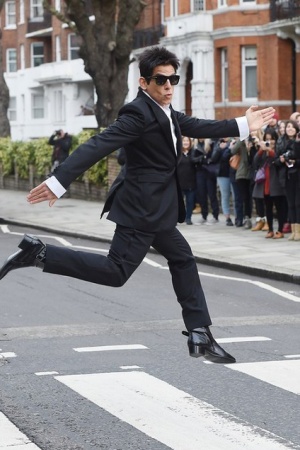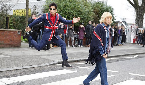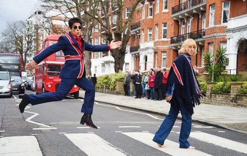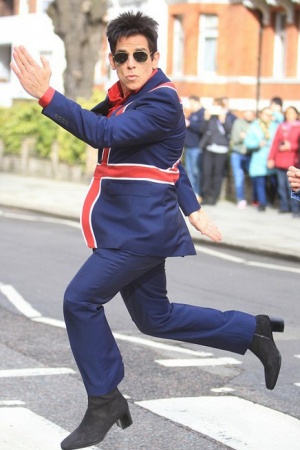 Перед премьерой комедии в Лондоне Бен Стиллер и Оуэн Уилсон примерили забавные костюмы с британским флагом – и воссоздали легендарное фото Beatles на улице Эбби-Роуд.