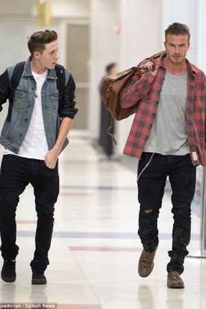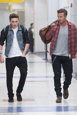 Дэвид Бекхэм со старшим сыном Бруклином приехали в Нью-Йорк, чтобы поддержать жену и мать Викторию Бекхэм во время Недели моды. Как видно, старший сын четы Бекхэмов очень старается подражать своему звездному отцу по стилю.