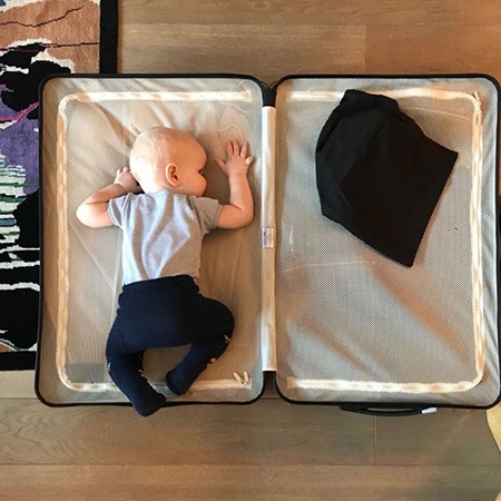 Платон точно вычислил причинно-следственную связь. Как только в гостиной появляется чемодан — значит мама опять уезжает...:( Чемодан у нас теперь — главный враг:) (орфография и пунктуация автора сохранены. — Прим. ред.), — прокомментировала фотографию Ксения.