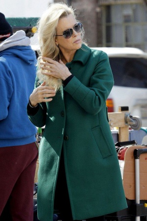 Работа над боксерской драмой "Grudge Match" ведется в Новом Орлеане. Красавица Ким во вторник ходила по съемочной площадке в коротком зеленом пальто, демонстрируя папарацци безупречные подтянутые и стройные ноги.