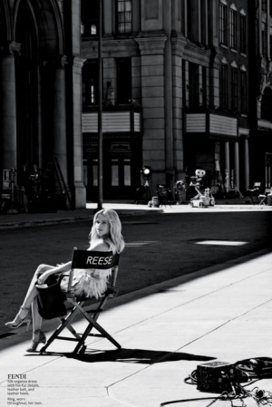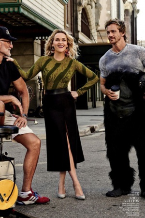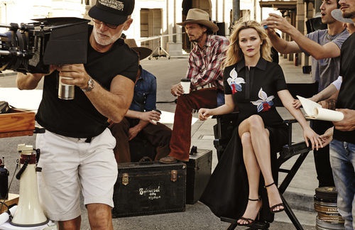 Риз Уизерспун стала героиней майского выпуска журнала InStyle. Декорациями для фотосессии выступила настоящая съемочная киноплощадка. 39-летняя актриса восседает на высоком раскладном стуле, а вокруг нее суетятся стилисты, ассистенты, сценаристы и коллеги по съемочной площадке.