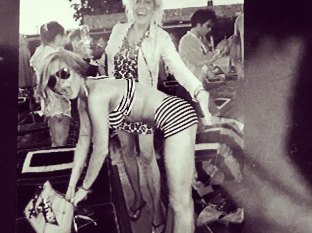 На очередном снимке, который актриса выложила на личной странице в социальной сети Instagram, она одета лишь в полосатый купальник. Фотограф запечатлел Линдси в довольно неоднозначной позе, во время веселья с друзьями.