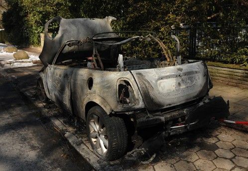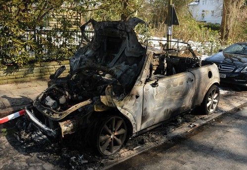 В результате нападения полностью сгорела машина 26-летней девушки Тиля Швайгера Свеньи Холтман. Пары не было дома, когда его атаковали неизвестыне борцы за справедливость.