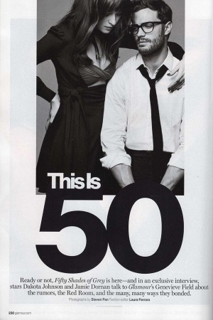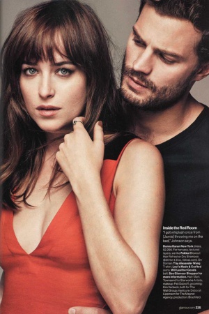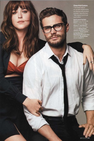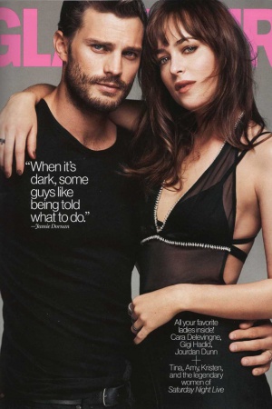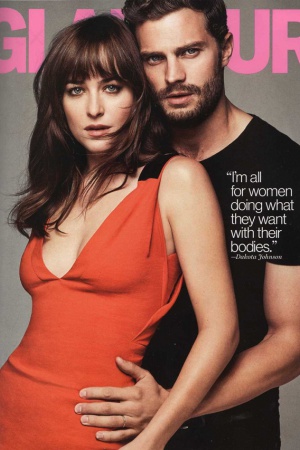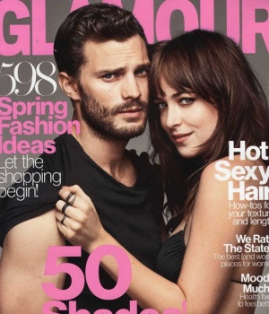 Главные герои эротического триллера "50 оттенков серого" Джейми Дорнан и Дакота Джонсон появились на обложке американского глянца Glamour.
