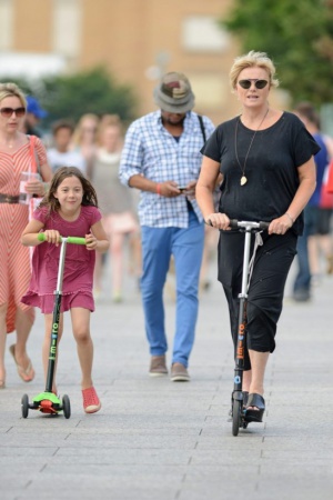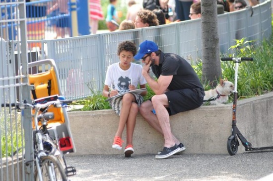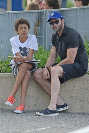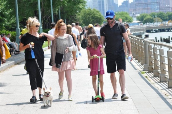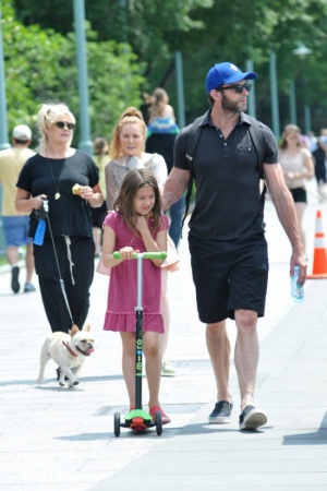 Хью Джекман со своей семьей попался в Нью-Йорке в объективы. Актер вместе с детьми Оскаром и Авой, женой Деборрой и собачкой Дали отправился погулять, причем в полезной форме – на самокатах. Сам-то Хью давно катается на самокате, и в этот раз решил поставить на него жену и дочку, а сам уж пешком. Позже в парке актер заставил Аву позаниматься спортом на площадке и проконтролировал художественные навыки Оскара. Вот он, настоящий внимательный папка!