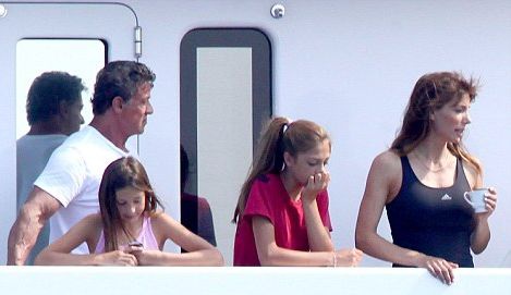Папарацци засняли звездное семейство в тот момент, когда их яхта встала на рейде у рыбацкого городка Камольи, что в Лигурии, Италия. Там отмечали ежегодный праздник Девы морской, и Слай и Co, конечно, решили посмотреть.