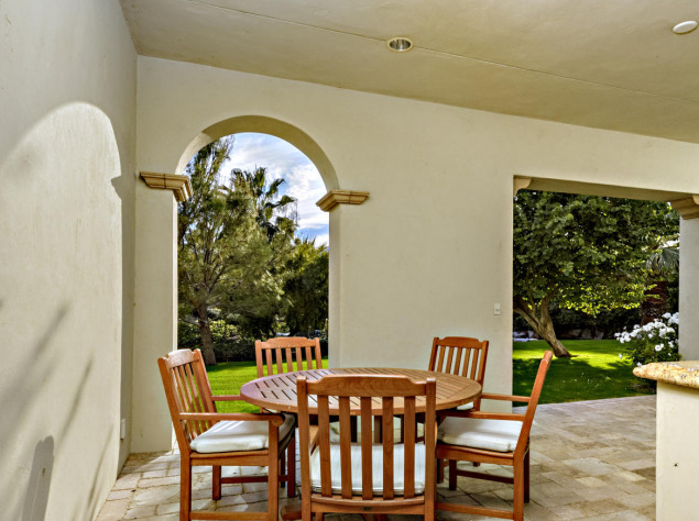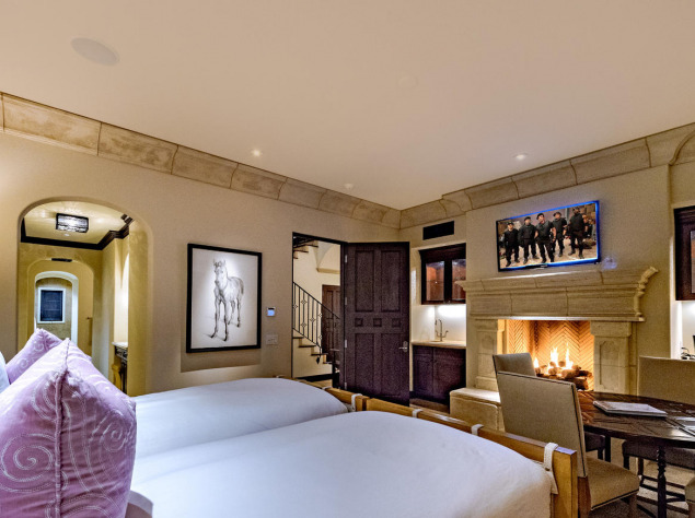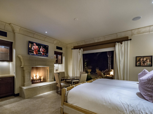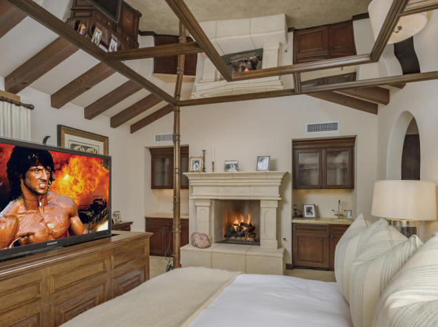 Также на территории есть живописный сад, внутренний двор с бассейном, собственный спа и гараж на восемь автомобилей. Кроме того, Сталлоне имеет двухэтажный гостевой дом с двумя ванными комнатами и полностью оборудованной профессиональной кухней.