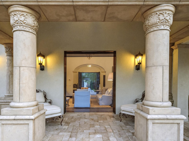 Особняк занимает территорию в 1,2 гектара. Жилье имеет шесть спален и девять ванных комнат.
