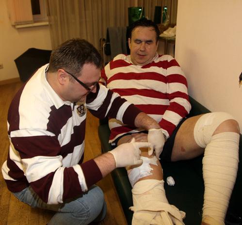 Спектакль прошел на бис — публика, как говорится, висела на люстрах. А в зале на первом ряду дежурил врач - главный хирург больницы Константин Покровский. Перед выходом на сцену профессор строго проинструктировал актера — с инвалидного кресла вам вставать не рекомендуется, все свои реплики читайте сидя. Да куда там! Уже через пять минут после начала действа Садальский поднялся с кресла и начал расхаживать с костылями в руках по всей сцене. Доктор медицинских наук аж побледнел от непослушания своего строптивого пациента. В антракте пришлось актеру делать новокаиновую блокаду и другие манипуляции. Едва отдышался, и вновь - на сцену.