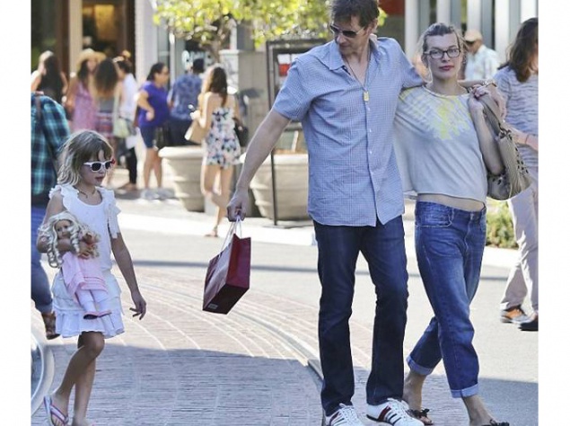 Семейство было замечено во время шопинга в Восточном Голливуде, Калифорния. Округлившийся живот Миллы Йовович пока не слишком заметен. Звезда не пыталась его скрыть и даже, наоборот, всячески старалась его продемонстрировать. В этом день на Милле были джинсы-бойфренды с заниженной талией, короткий топ свободного кроя и шлепки, украшенные бантами. Лаконичный образ в стиле кэжуал она дополнила холщовой сумкой-шопером и изящными оптическими очками в черной прямоугольной оправе.