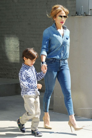 45-летняя Джей Ло была сфотографирована со своими очаровательными детьми в Нью-Йорке: красотка блистала в стильном джинсовом "look-е", который дополнила элегантными туфельками цвета nude с острым носом.