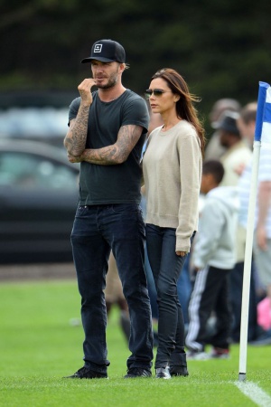 Икона стиля Виктория все больше времени проводит со своей семьей, и лишь изредка посещает светские рауты. На днях звездную пару удалось сфотографировать в городе Рединг, Англия, где Виктория и Дэвид смотрели, как на футбольном поле тренируются их сыновья.