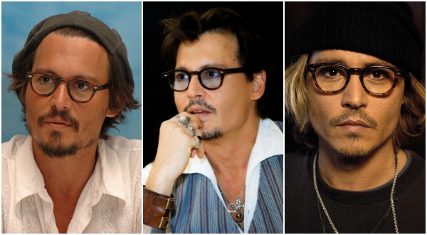 Одна из самых излюбленных форм оправы очков, с которой уже давно и уверенно ассоциируется образ Джонни Деппа — это винтажные круглые очки в роговой оправе. Для кареглазого, смуглого и длинноволосого красавца Джонни, предпочитающего в повседневности одеват