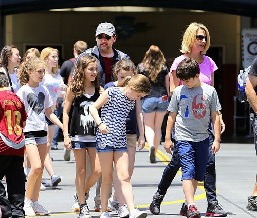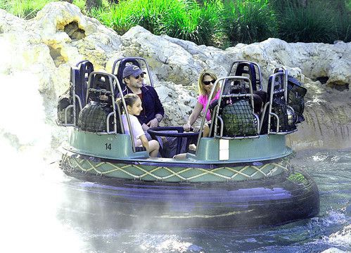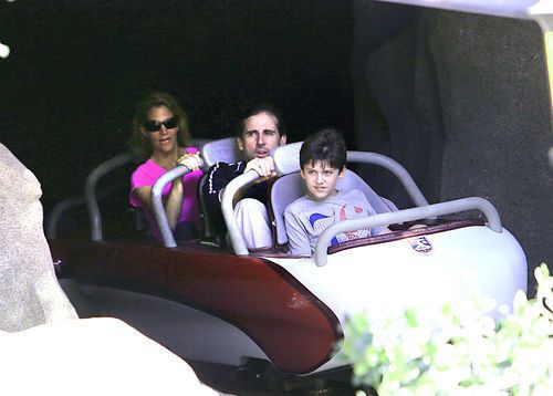 Недавние выходные Стив провел со своей семьей в Диснейленде. Неброская одежда ничем не выдает, что на водных аттракционах вместе с другими посетителями катается голливудская звезда.