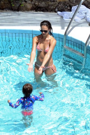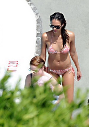 Джессика Альба была сфотографирована со своими дочерьми Онор и Хэвен в бассейне элитного отеля в Италии. В маленьком бикини в розово-белых тонах 31-летняя актриса выглядела безупречно: