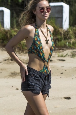 23-летняя британка демонстрировала на пляже свою идеальную фигуру. Сначала Сьюки блистала в зеленом монокини с разноцветным принтом, а затем сменила его на бикини в бело-красную полоску. Не забыла модель и об украшениях. Уотерхаус прихватила на пляж массивное ожерелье. Не знаем, удобно ли ей было плавать с таким аксессуаром, но выглядела она так, словно только что сошла со страниц модного журнала.