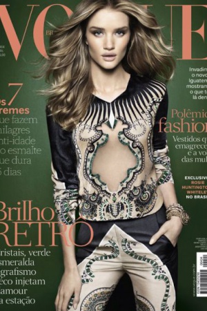 Обложку апрельского Vogue Brazil украсила актриса и модель Роузи Хантингтон-Уайтли (Rosie Huntington Whiteley). Фотографом выступил Henrique Gendre.