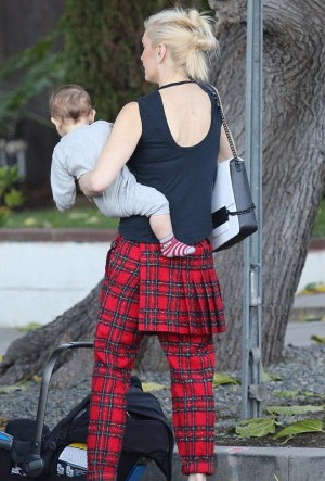 Иностранные папарацци застукали 45-летнюю Гвен Стефани в Калифорнии (США), когда она разгружала покупки из машины. Певица ловко держала пакеты с продуктами в одной руке и 11-месячного сына Аполло Боуи Флинна Росдейла в другой. Видно, что материнство, не составляет для артистки труда.