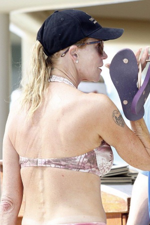 56-летняя кинозвезда, несмотря на свой возраст, отдает предпочтение бикини, а не сдельным купальникам, способным скрыть все недостатки фигуры.