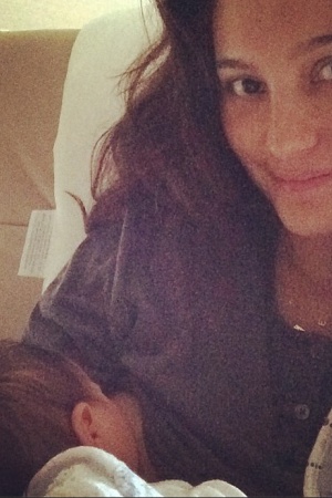 Сегодня супруга актера опубликовала в своем фотоблоге трогательное фото с малышкой, сделанное во время кормления грудью.