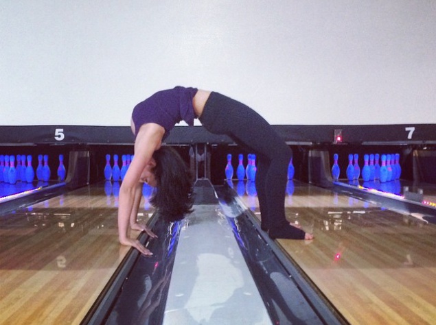Жена американского киноактера Алека Болдуина, Хиллари Томас Болдуин, неутомима в своих йога-экпериментах.
