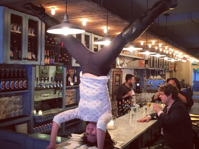 Мама полуторагодовалой малышки Кармэн Габриэлы делает стойки на перилах, в ванной комнате, на барной стойке, в боулинге, на кухонном столе, возле стиральной машины и у банкомата, в парке, а то и вовсе в витрине магазина.