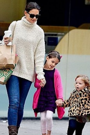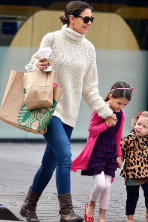 Малышки увлеченно щебетали о чём-то, чем очень радовали бывшую жену Тома Круза. Она отвела девочек в одно из заведений Starbucks, из которого вся троица вышла с огромными пакетами покупок.