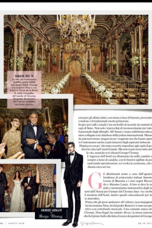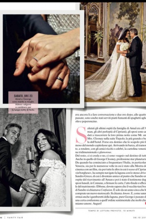 О роскошной свадьбе Джорджа Клуни и Амаль Аламуддин будут еще долго шуметь мировые глянцевые журналы. После Hello! и People итальянское издание Vanity Fair опубликовало эксклюзивные фото самого торжества знаменитой пары.