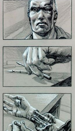 В Сети появились некоторые наброски рисунков Джеймса Кэмерона, которые он сделал ещё в 1984 году, когда вышел первый "Терминатор" с Арнольдом Шварценеггером в главной роли. На первом рисунке режиссёр изобразил, как должен был выглядеть робот, а также некоторые особенности его строения.
