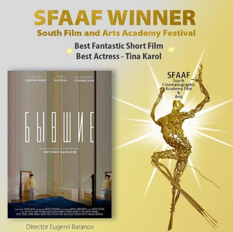 "Фильм "Бывшие" одержал победу на кинофестивале SFAAF сразу в двух номинациях - "Лучший фантастический короткометражный фильм" (@eugenebaranov) и "Лучшая женская роль" (@tina_karol) Поздравляю всю команду с ещё одной победой", - написала Кароль.