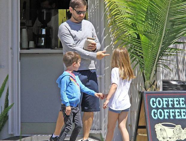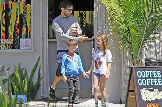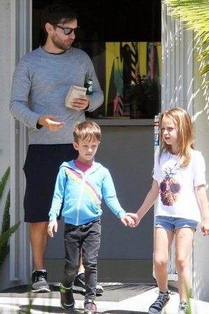 Тоби Магуайр был замечен со своими двумя детьми - семилетней дочерью Руби и пятилетним сыном Отисом.