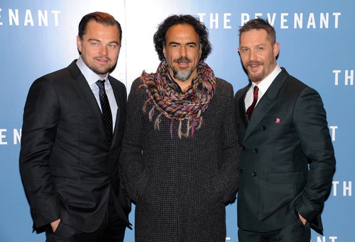 На красной дорожке премьеры Леонардо ДиКаприо и Том Харди, получившие номинации на "Оскар" за фильм "Легенда Хью Гласса" как лучший актер и лучший актер второго плана соответственно, позировали с режиссером Алехандро Гонсалесом Иньярриту, которому, разумеется, также досталась номинация на престижную кинопремию.
