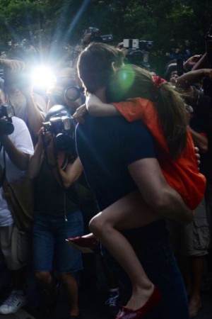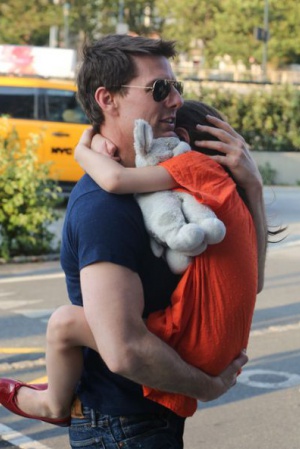 Тома и Сури не видели вместе с середины июня. Актер был занят на съемках, а после началась суета со внезапным разводом. Но вот, наконец, папа с дочкой воссоединились. Том прилетел со съемок фильма "Забвение" специально ради этой встречи. Как сообщает Daily Mail, Кэти и ее бывший муж не разговаривали, даже когда Круз пришел забрать Сури. Все это время Том мог видеть дочь лишь с помощью Skype. Как сообщают, Кэти не устанавливала никаких лимитов общения отца с дочерью с помощью компьютера. "Том и Кэти понимают, что им необходимо вместе принимать решения относительно дочери. И они знают, что Сури любит обоих родителей одинаково сильно".