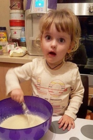 Несмотря на столь юный возраст, девочка уже вовсю помогает маме на кухне. Недавно Виктория показала фото, на котором видно, что девочка готовит тесто для блинов, причем получается у нее все совсем неплохо. А еще Виктория рассказала, что Маша помогает с братом Ваней и даже кормит его из бутылочки.