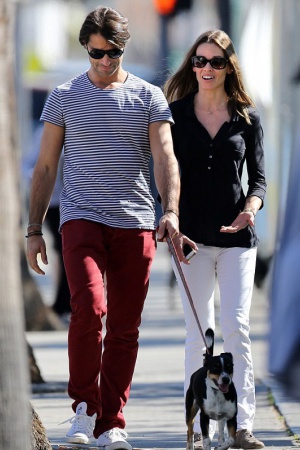Оскароносная актриса и её новый избранник, французский агент по торговле недвижимостью Лоран Флёри, прогуливались в лучах теплого солнца и вели на поводке их (как сообщает заокеанская пресса) общую собаку.