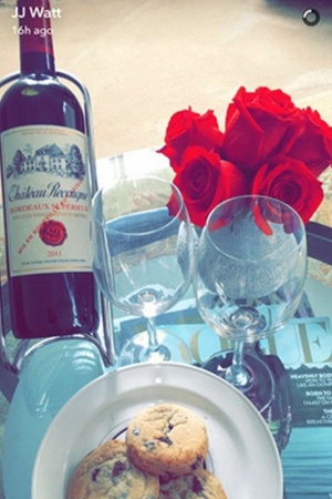 В субботу Джей-Джей выложил в Snapchat фото, на котором изображены - бутылка вина, два бокала, шоколадные печенья, и розы, но парень не упомянул для кого он приготовил романтик.