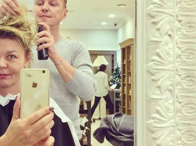 "Вот он - гений парикмахерского искусства. Доверяюсь его рукам и ножницам на протяжении уже почти...18 лет (аааа! какие цифры!) Настоящий мастер своего дела! Как истинный творец пару раз за эти годы предупреждал меня: "давай сегодня не будем стричься? Чего-то рука не в настроении." Я настаивала. Зря!!! Потом поняла, что надо его слушаться, поскольку к вдохновению надо относиться уважительно в любом творчестве!!!", - написала телеведущая в соцсетях под фото, на котором ей делают прическу.