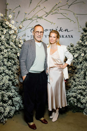 46-летняя Юлия Высоцкая и 82-летний Андрей Кончаловский на днях стали главными персонами на презентации капсулой коллекции бренда Ekonika, созданной совместно с актрисой. На fashion-дебют Юлию вдохновил 16-летний сын Петр Кончаловский: когда-то он подарил маме сумку, которую собственноручно разукрасил изображением ромашек. Высоцкой настолько это понравилось, что она решила создать модную линию по мотивам рисунка сына.