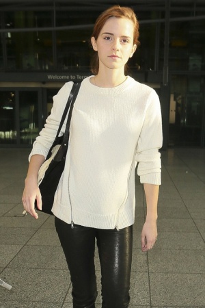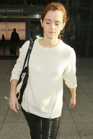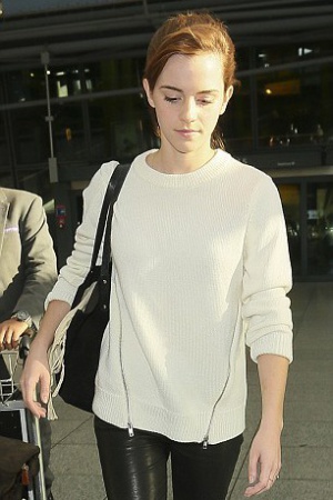 Перелет через Атлантику – не то мероприятие, ради которого станешь наряжаться как для красной дорожки. Вот и Эмма Уотсон, которую папарацци нащелкали в лондонском аэропорту Хитроу, путешествовала, одетая самым скромным образом: минимум косметики (а, может, и вовсе никакой), волосы убраны в самый обыкновенный хвост, белый джемперок, черные леггинсы и сапожки.