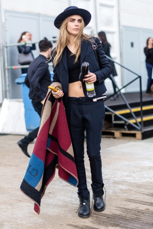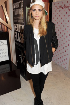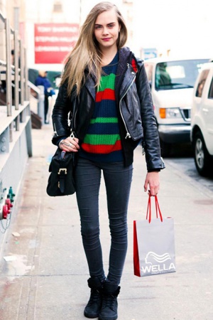 Кара Делевинь может кардинально перевоплощаться и менять имидж, как перчатки. Сегодня она появляется на публике в красивом обтягивающем платье, а завтра, как пацанка, прыгать по городу в кепке и массивной обуви. Смотрите ее привычный уличный стиль.